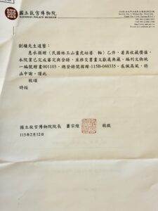 ✩2月23日✩劉墉先生無償捐贈國立故宮博物院《民國林玉山畫虎姑婆 軸》,完成審定與登錄並移交書化文獻處典藏。總登錄號國贈-115 B -048335。