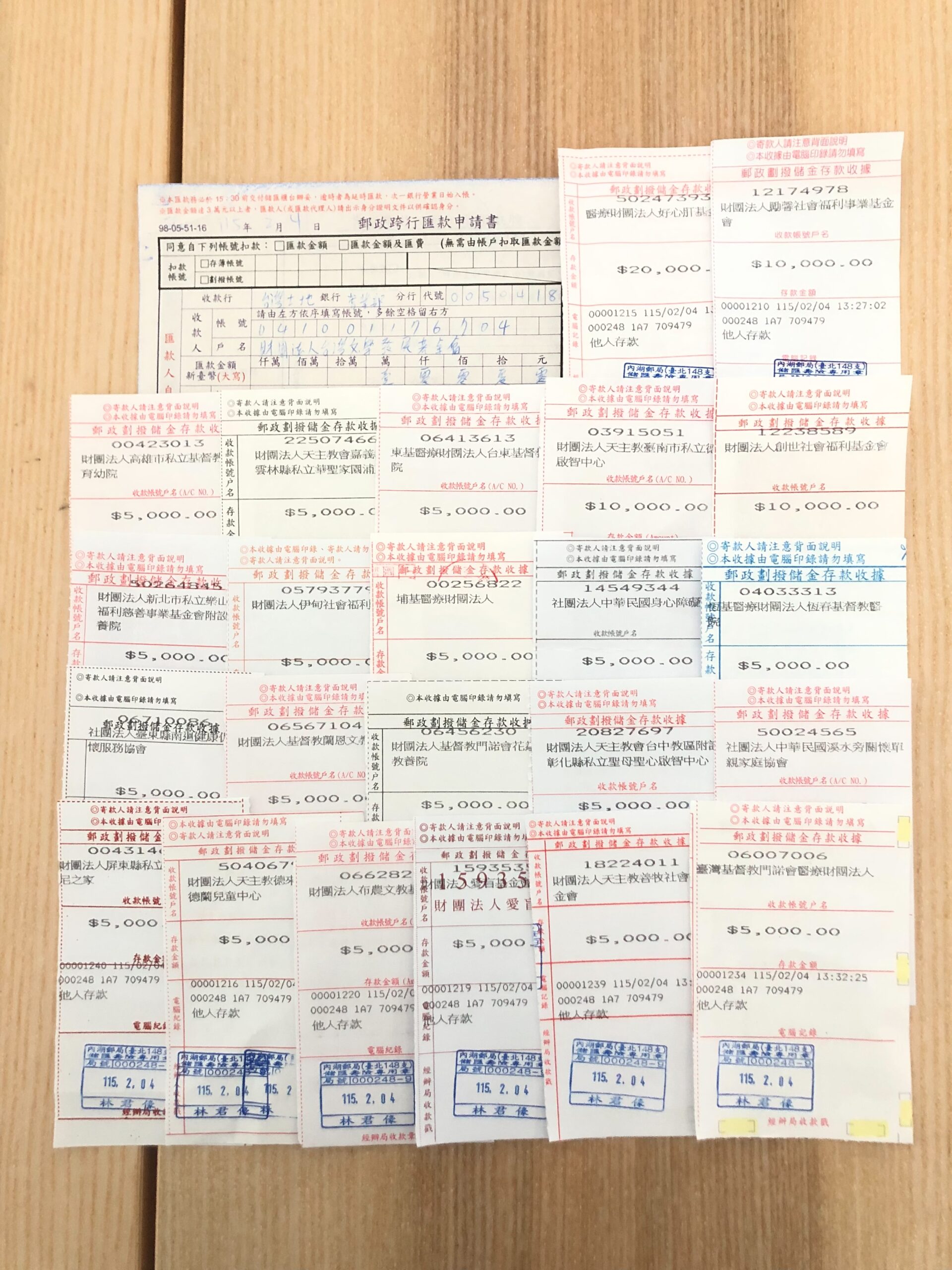劉墉先生以他收到的版稅做新年慈善捐款如下: